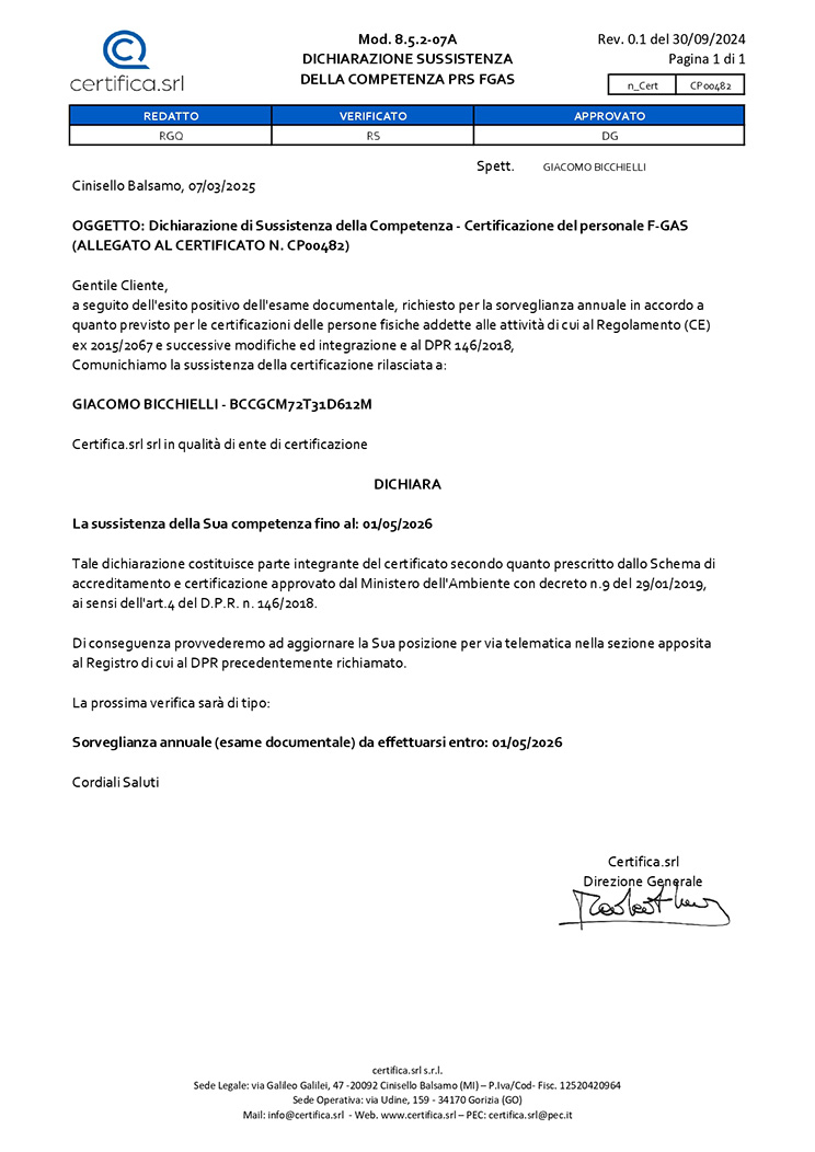 CERTIFICAZIONI
